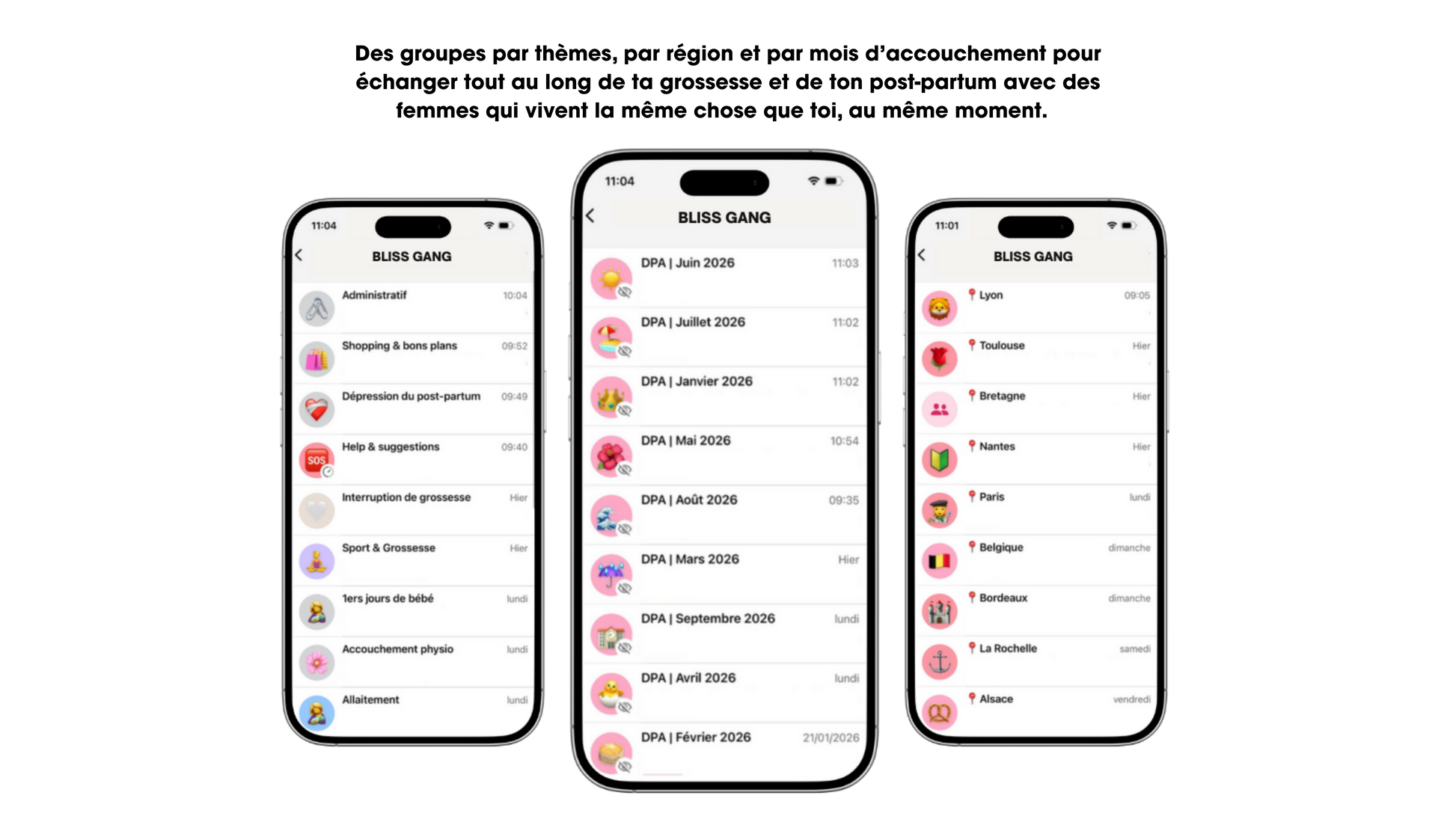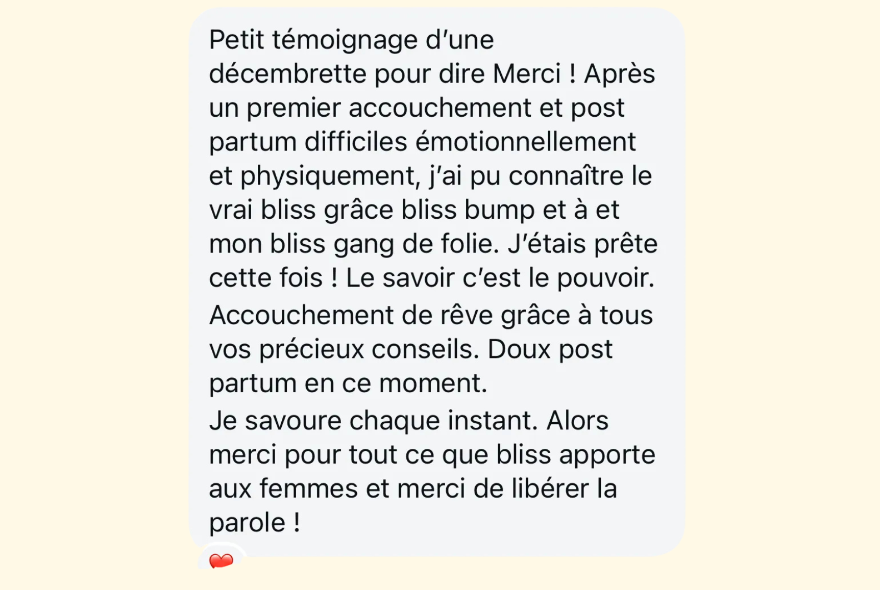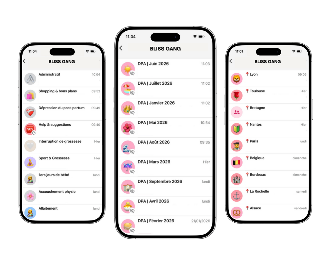 Le Bliss Gang, c’est la communauté de Bliss Bump : un espace safe et bienveillant pour ne jamais traverser la grossesse ou le post-partum seule, échanger, se soutenir et avancer ensemble, entourée de femmes qui vivent la même chose que toi.
